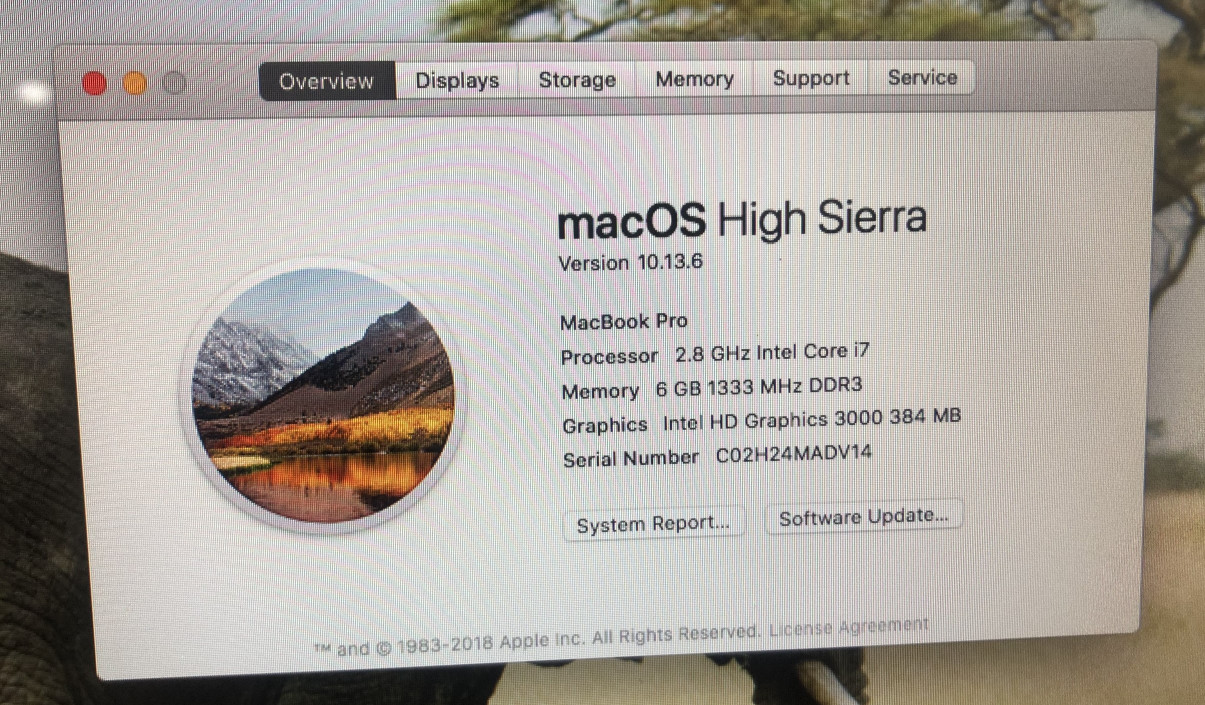 | Hệ điều hành | Mac Os High Sierra |