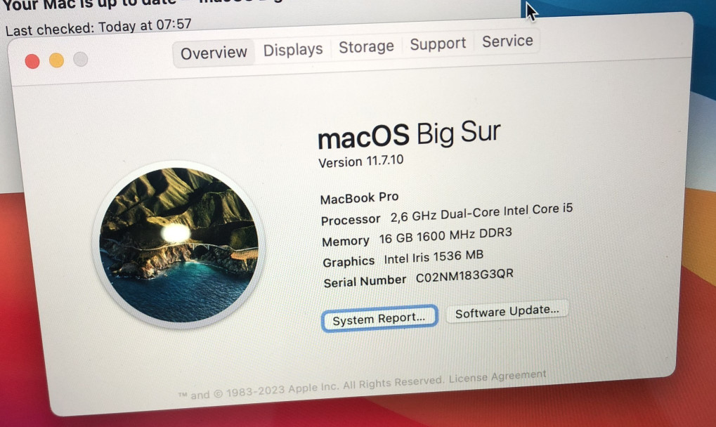 | Hệ điều hành | Mac OS BigSur |