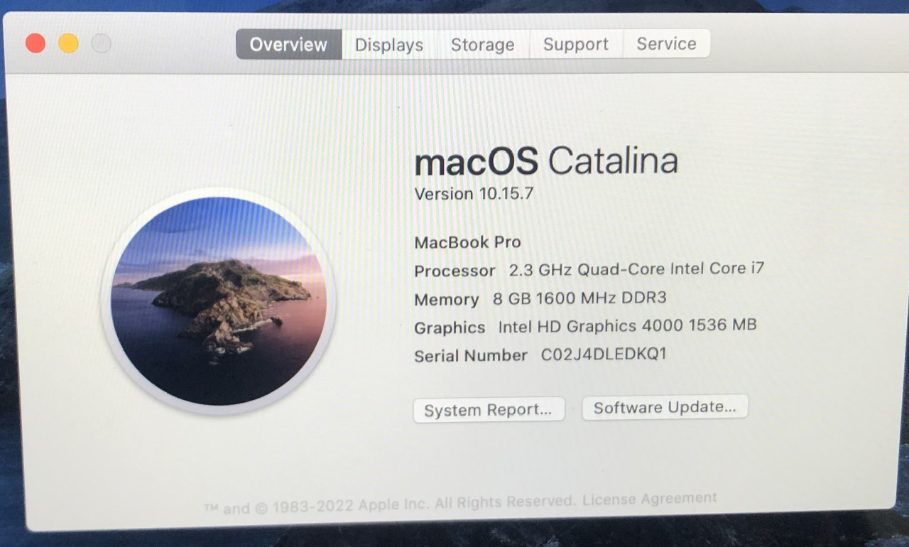 MacBook Pro 15-inch Core i7-3615QM 2.3GHz RAM 8GB SSD 256GB