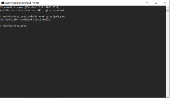 bcdedit /set testsigning on. - Khởi động lại máy tính để chế độ Test Mode có hiệu lực.